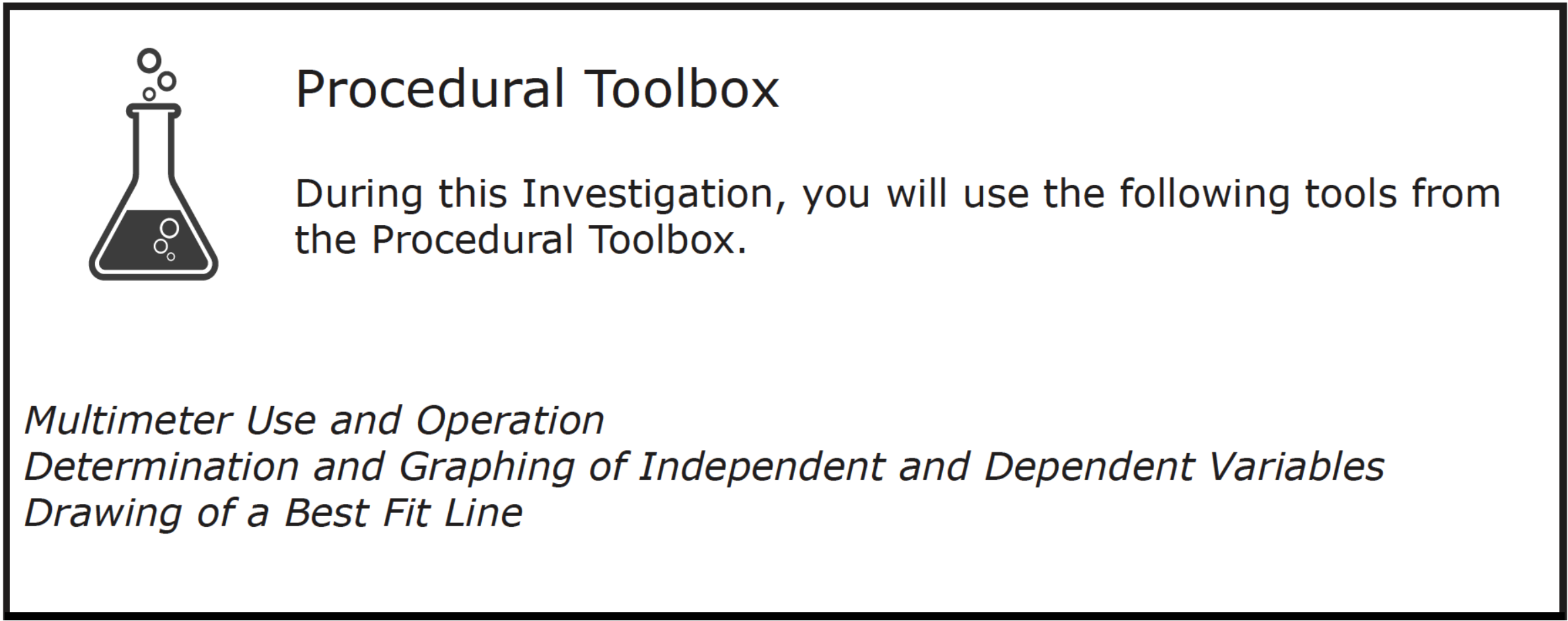 Student Preparation for the Investigation includes having students gather the following materials. This preparation takes place on lab day after student lab groups have settled at their assigned lab tables.
