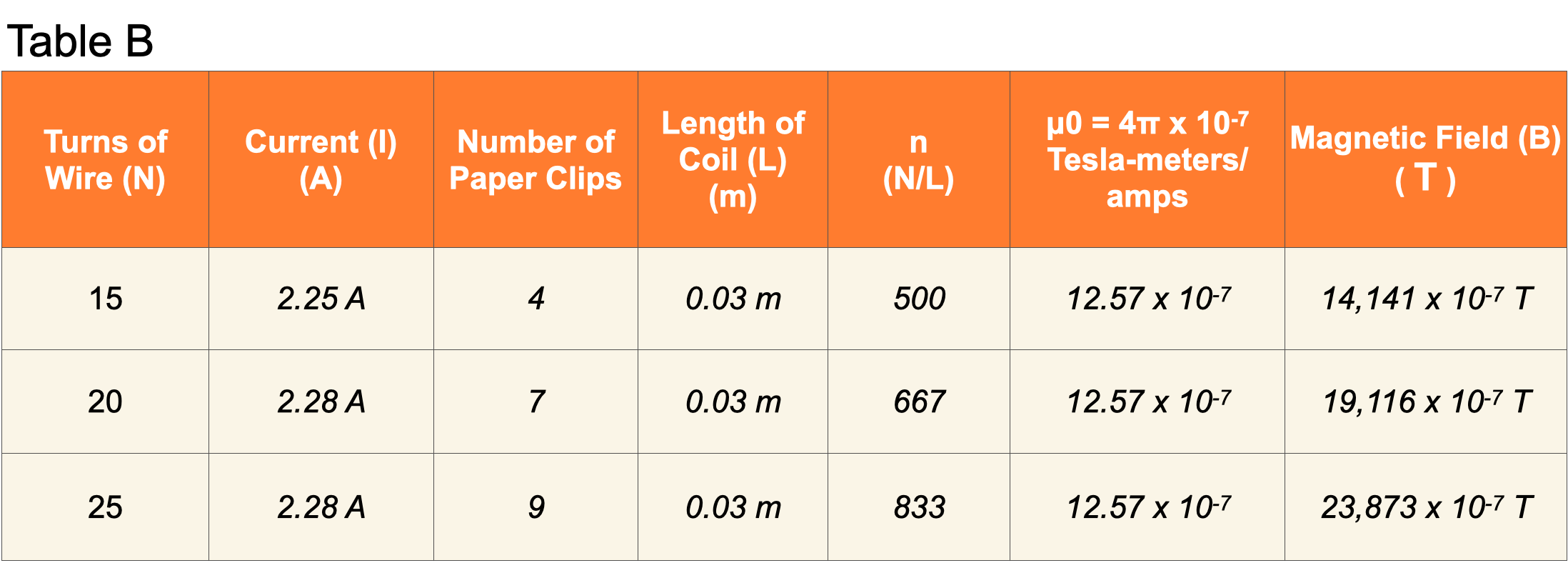 4. Record the number of paper clips the electromagnet can hold in Table B.