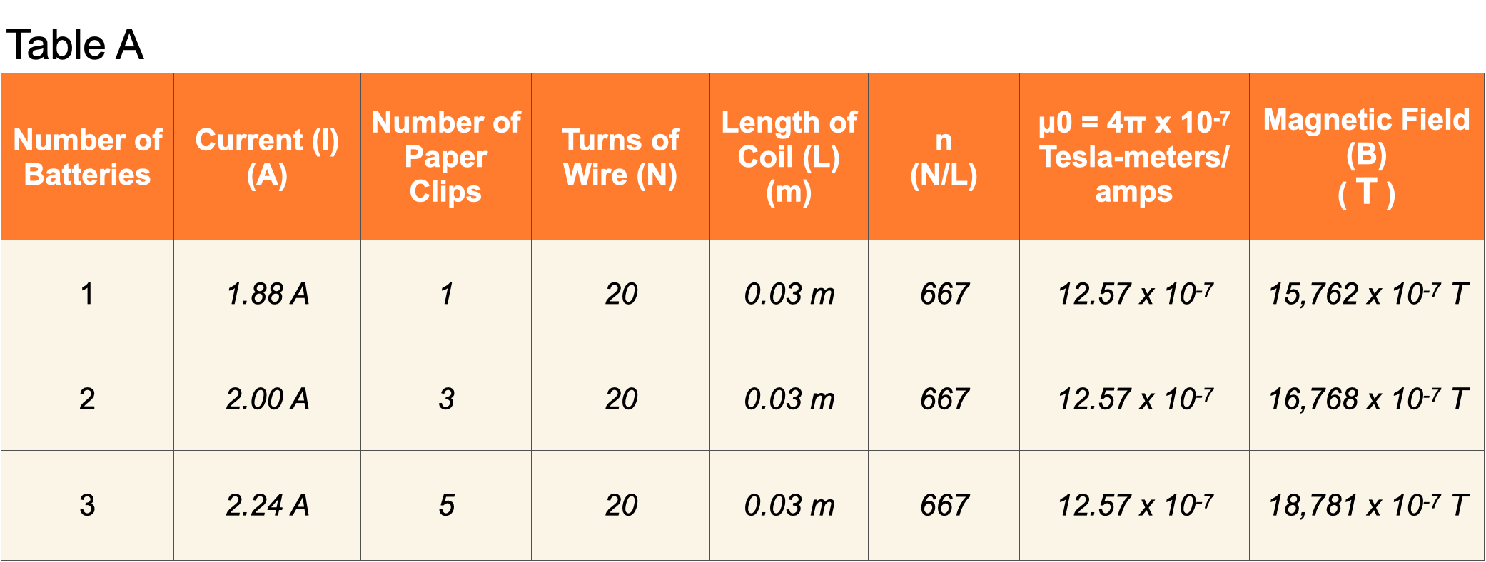 4. Determine how many paper clips the magnet can pick up with three batteries. Record the number of paper clips in Table A.
