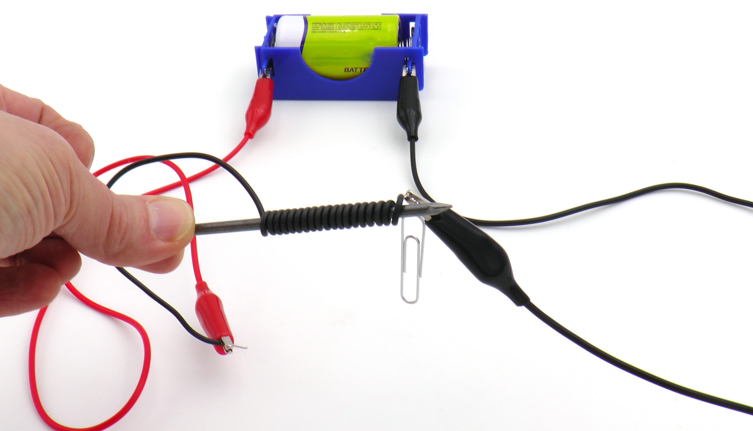 b. Hold a paper clip up to the electromagnet near the wire coil.