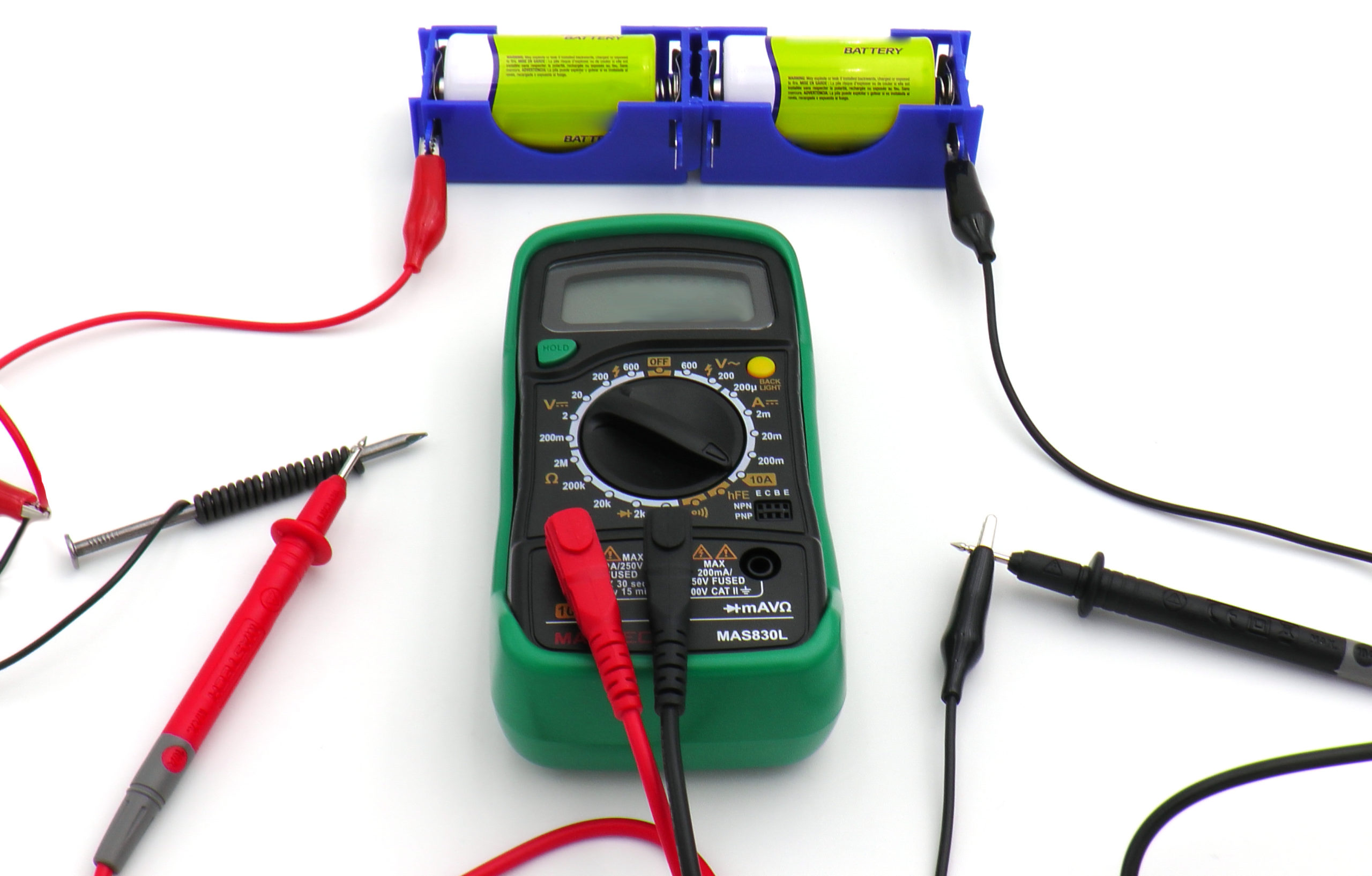 2. Assemble the multimeter and measure the current generated in the circuit by the three batteries. Refer to the Procedure, Multimeter Use, and Operation if necessary.
