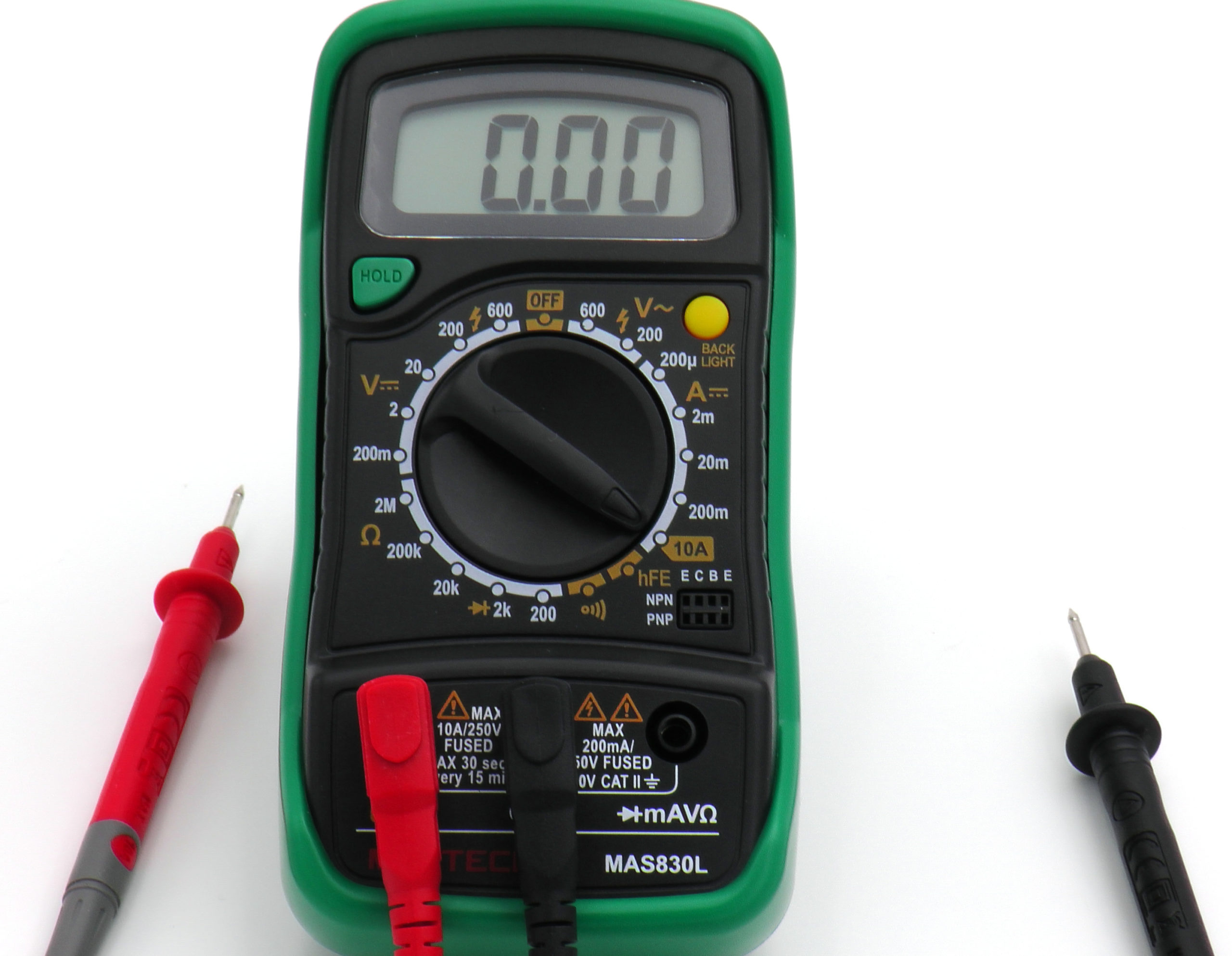 a. Place the connector of a red probe into the “10ADC” outlet on the front of one multimeter.