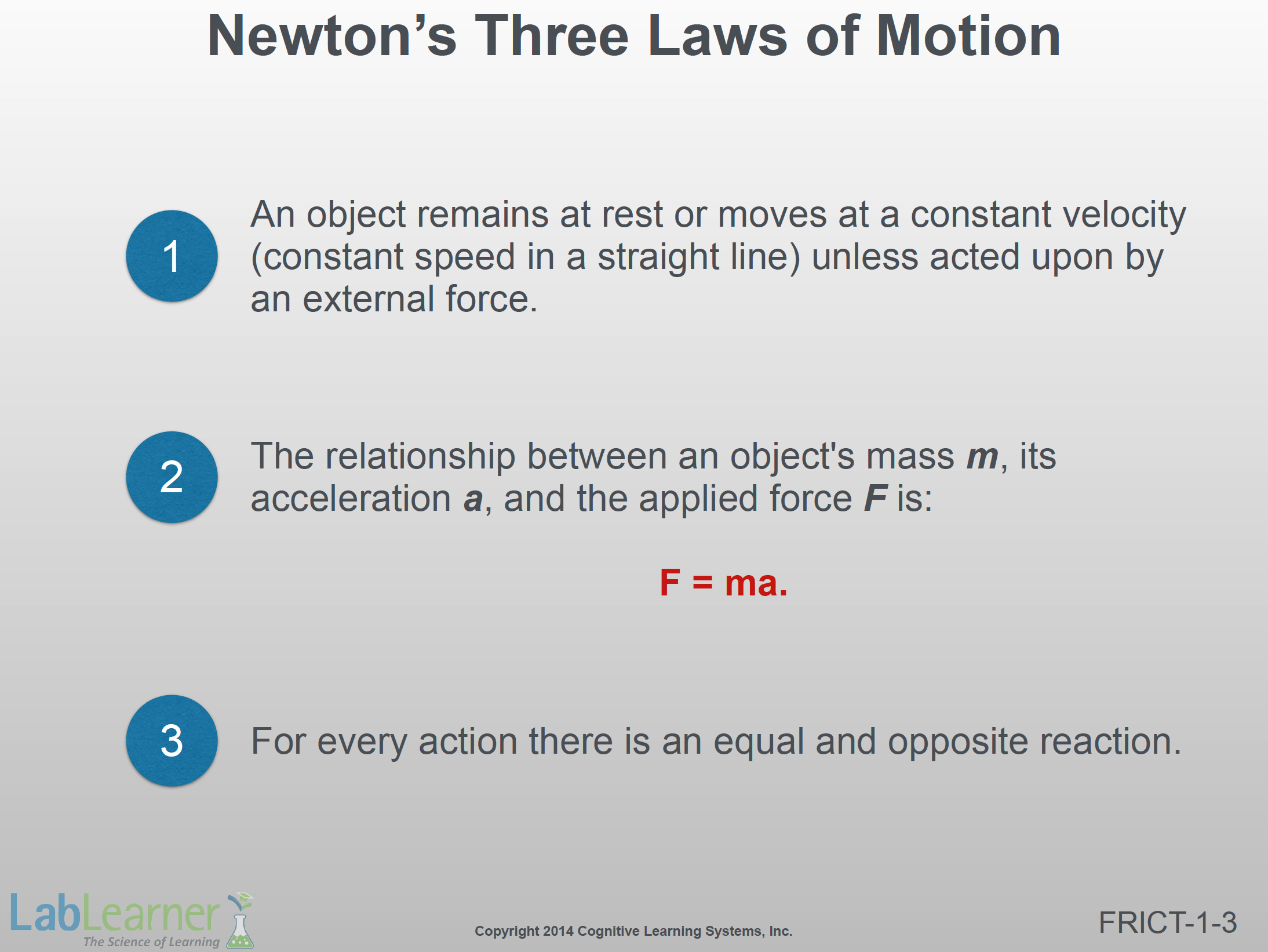 - In this slide, we are reviewing Newton’s Three Laws of Motion. The first two laws are particularly relevant to this CELL.