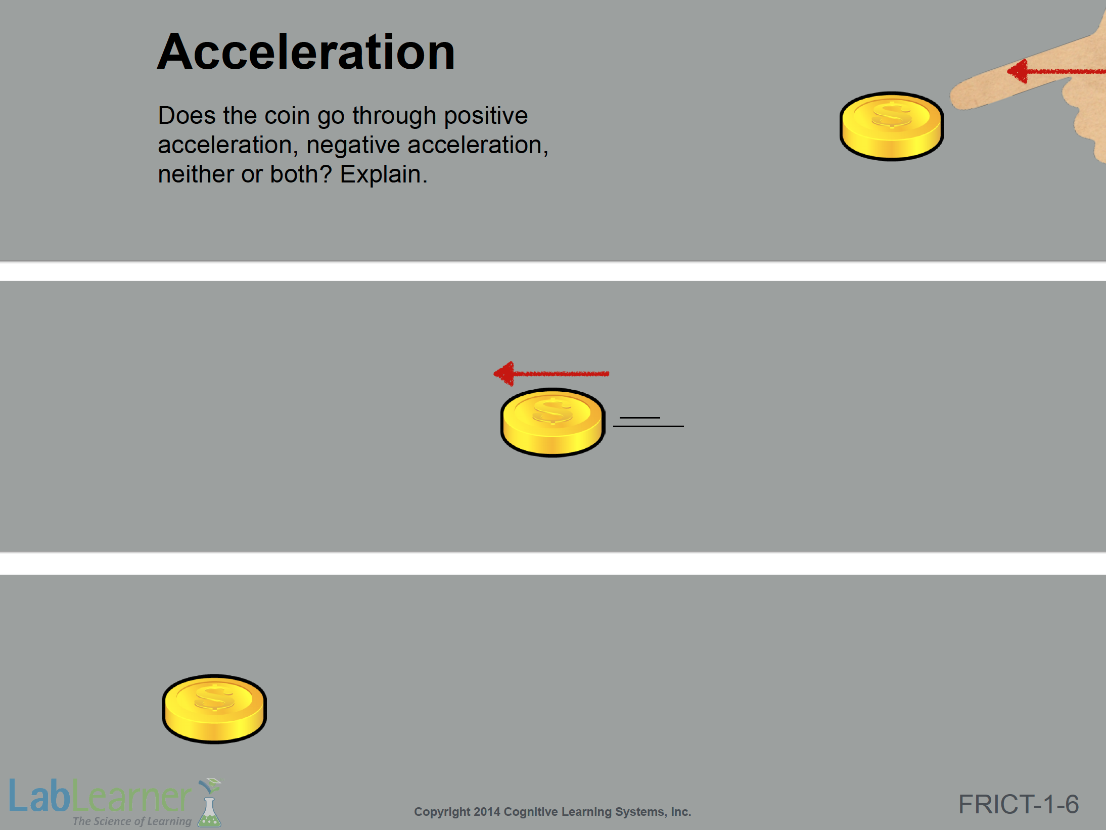 Note: This slide, previously seen, asks you to explain the coin push in terms of acceleration.