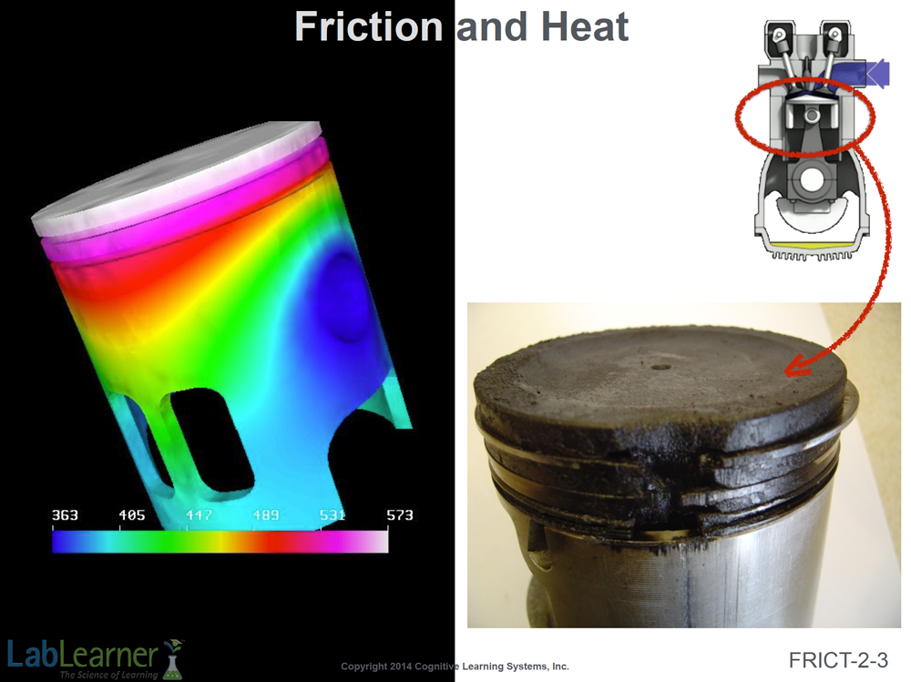 - Inform students that the next example of the tremendous amount of heat that can be produced by friction under more everyday conditions is shown in the heat generated by a piston inside an internal combustion engine.