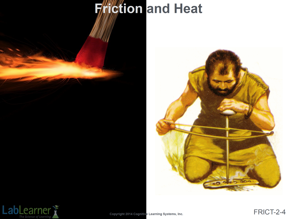 - Explain that this slide illustrates one of the earliest and most important uses of friction by humans, namely the ability to start a fire on demand.