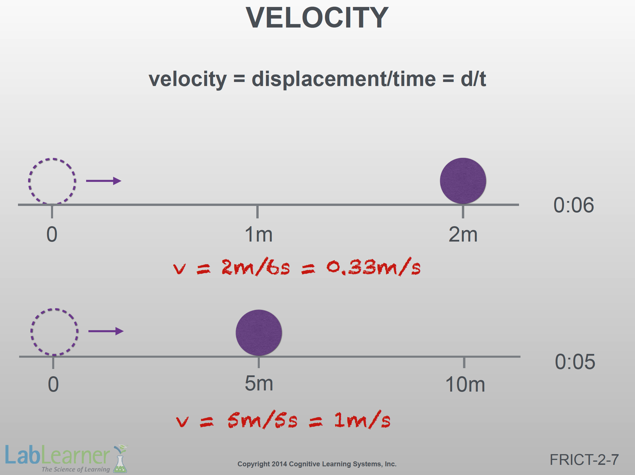 - Use it to review the calculation of velocity where v = d/t.