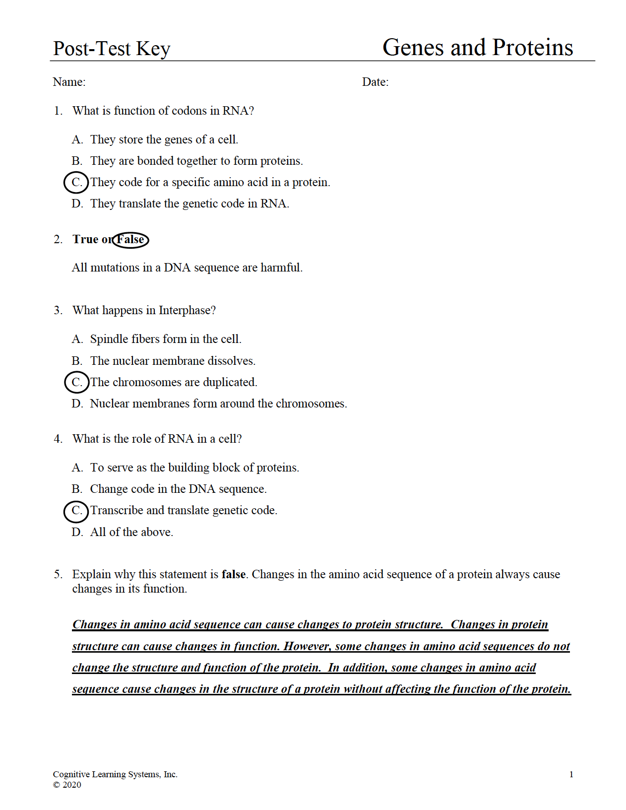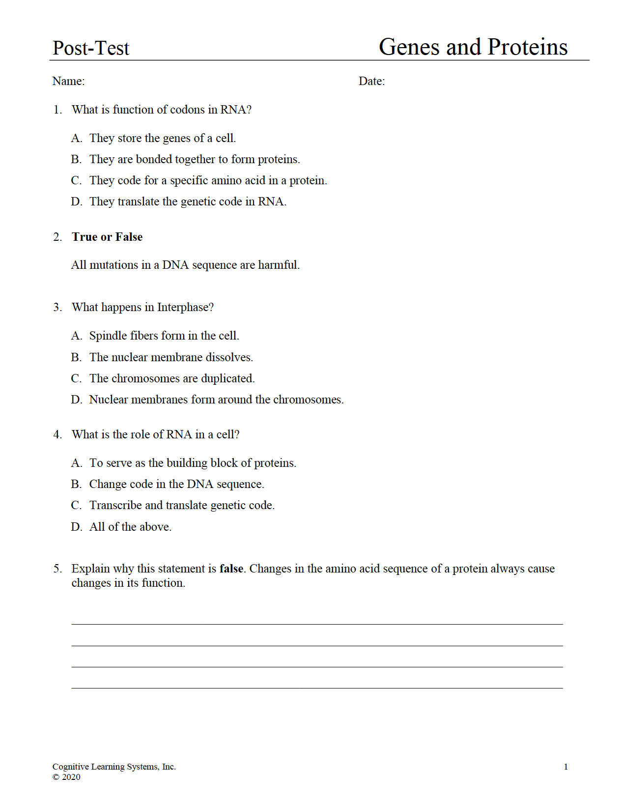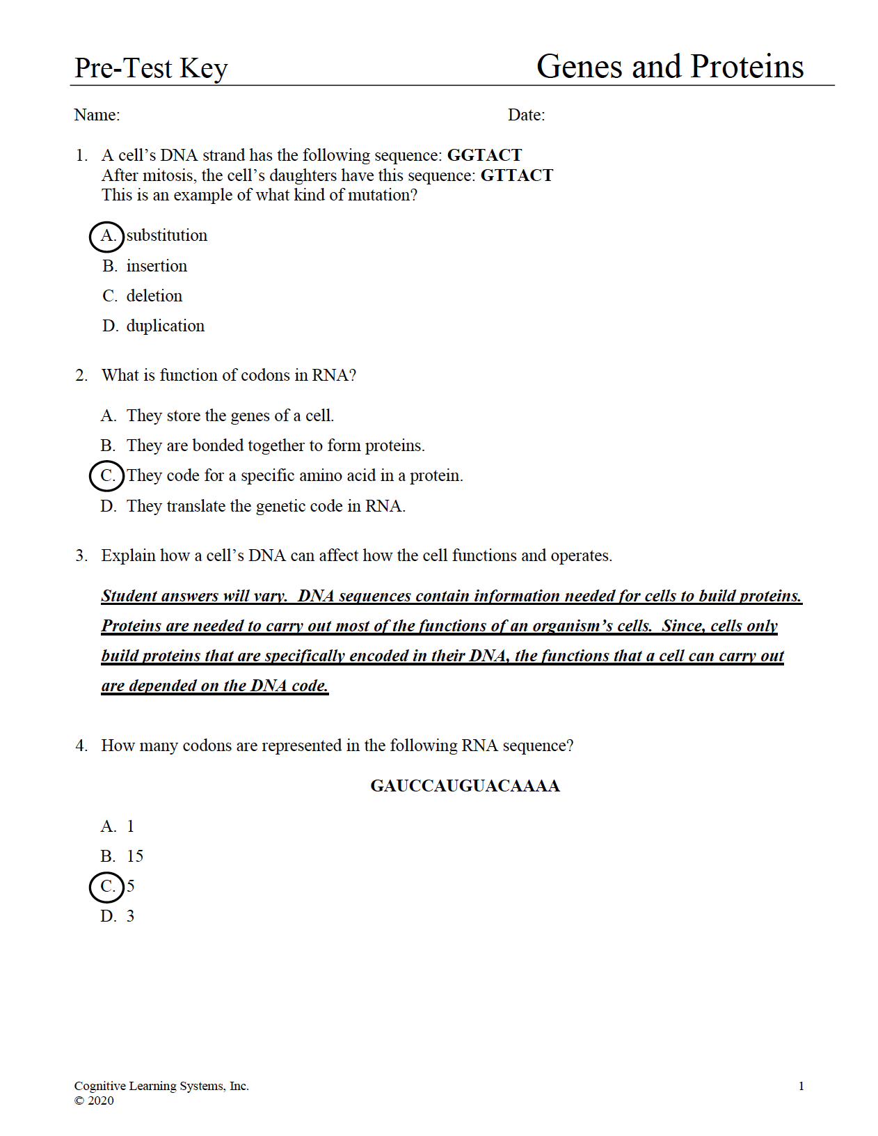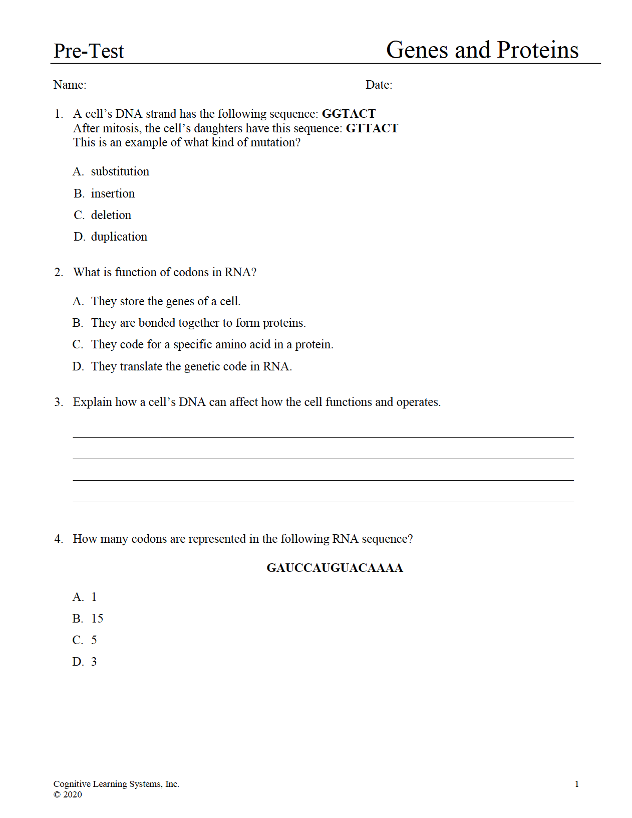 Genes and Proteins: Investigation 4 - Performance Assessment
