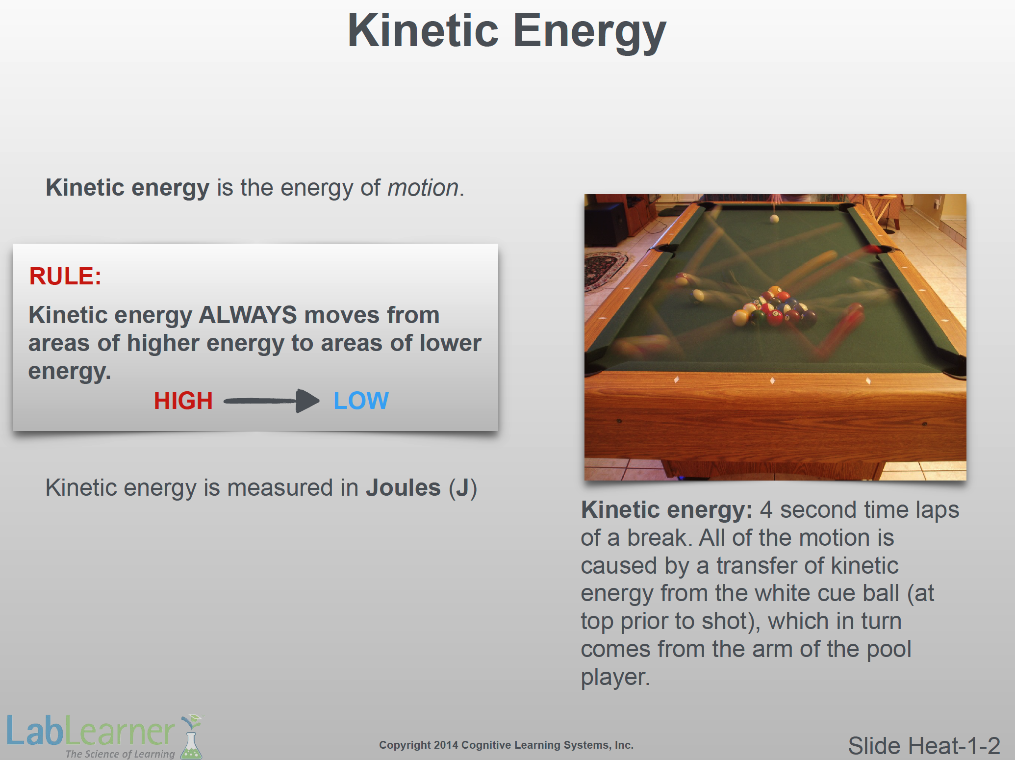 - Remember that in slide HEAT-1-2, we stated a Rule that kinetic energy always moves from areas of higher energy to areas of lower energy.