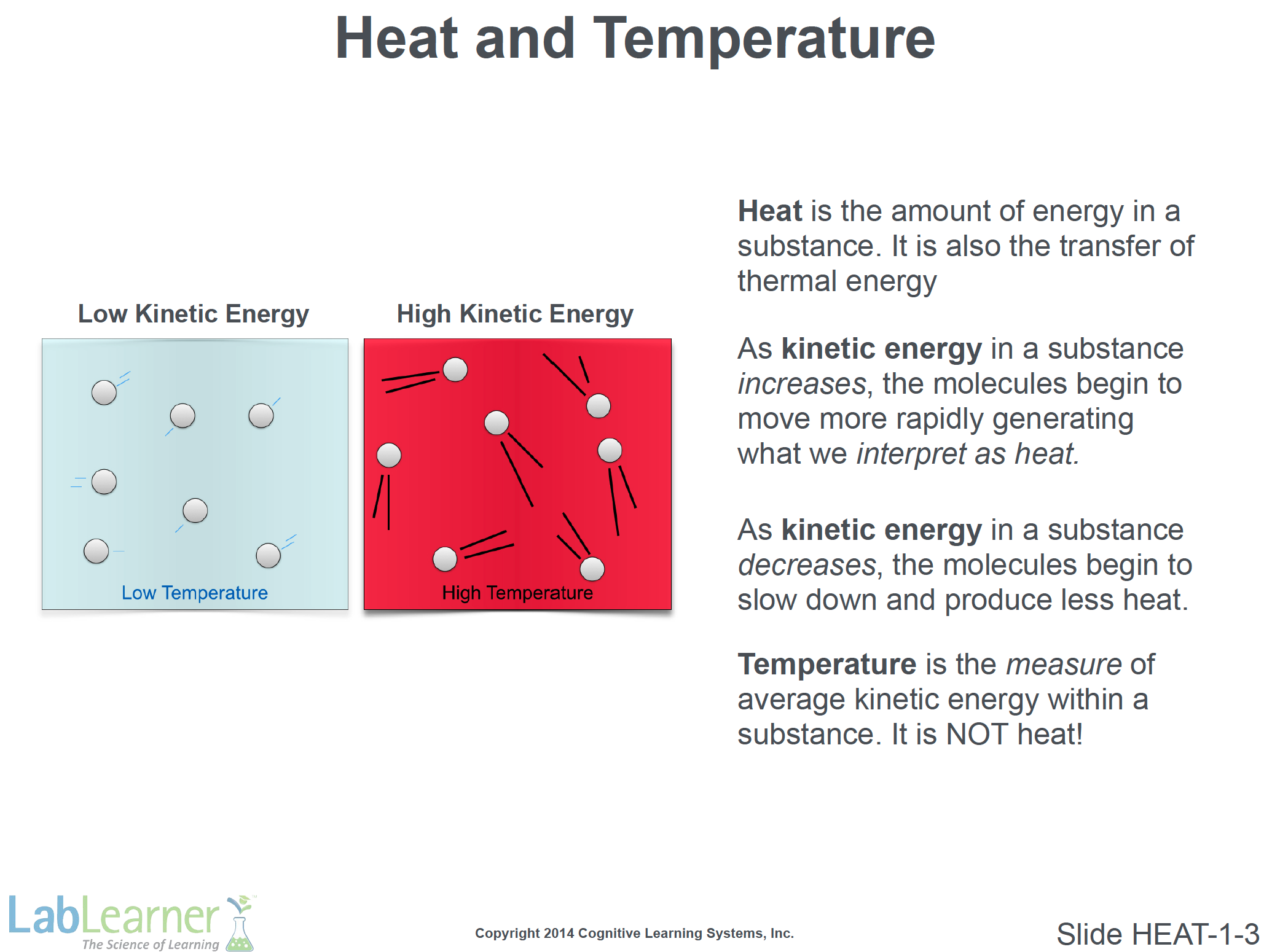 - This slide introduces the concept of kinetic energy in connection with heat.