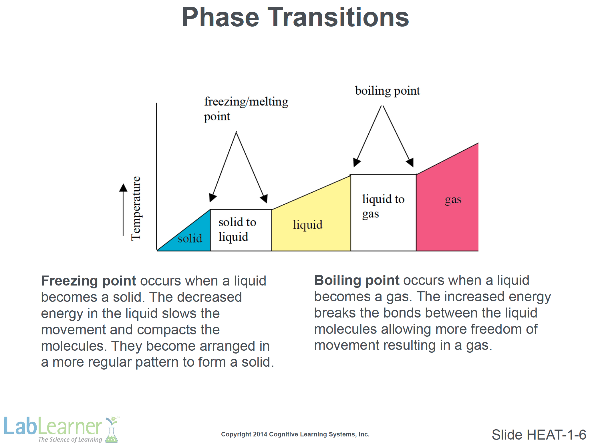 - This slide illustrates the relationship between kinetic energy, temperature, and phase transitions.