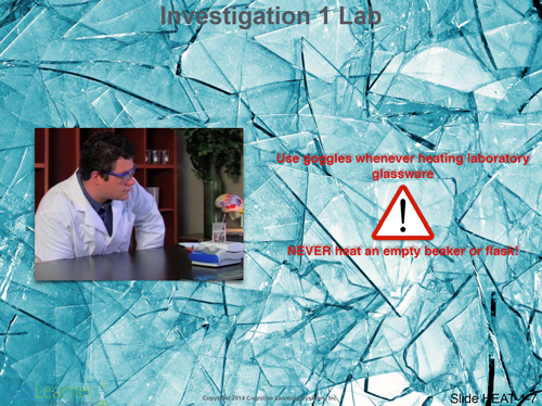 - Goggles should always be worn even when only heating or boiling water because sometimes slight cracks in glassware cause them to break when heated.