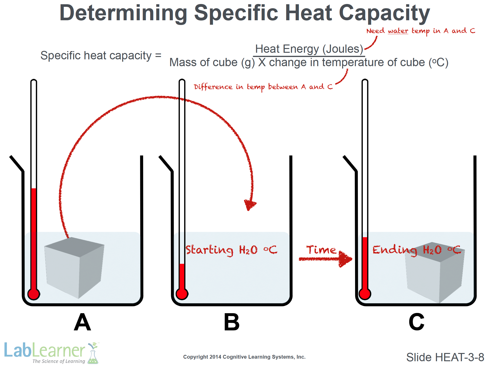 - Tell students that they will use data obtained from this experiment to calculate the specific heat capacity of two cubes made of different metals.