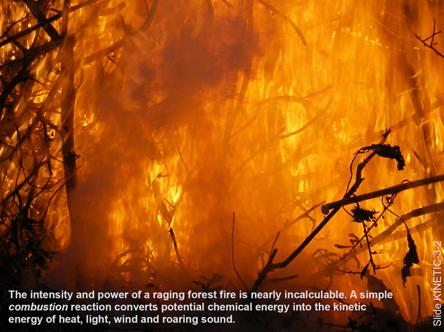 - This slide is simply to accentuate the extreme power associated with combustion reactions and the release of kinetic energy from stored chemical potential energy.