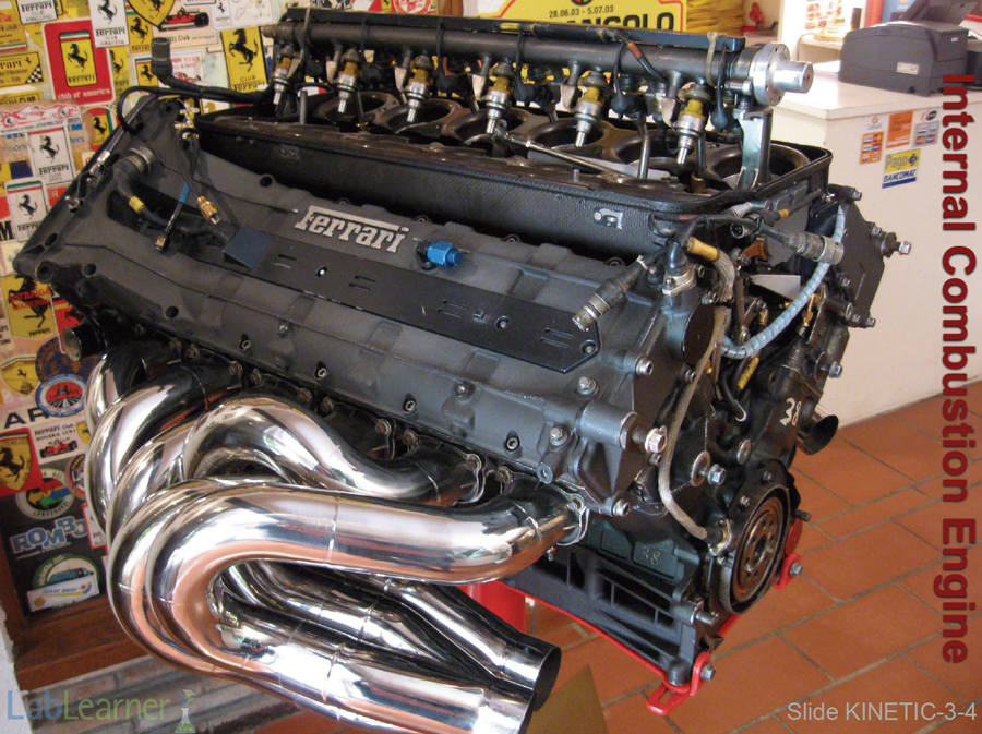 Note: The engine pictured here is a Ferrari 3.0 liter V12 F1 engine (1995) that produced 700 horsepower (522 kW) at 17,000 rpm. Four-stroke internal combustion engines work by using cylinder and piston technology. The details of the individual four “strokes” are explored in the next slide.