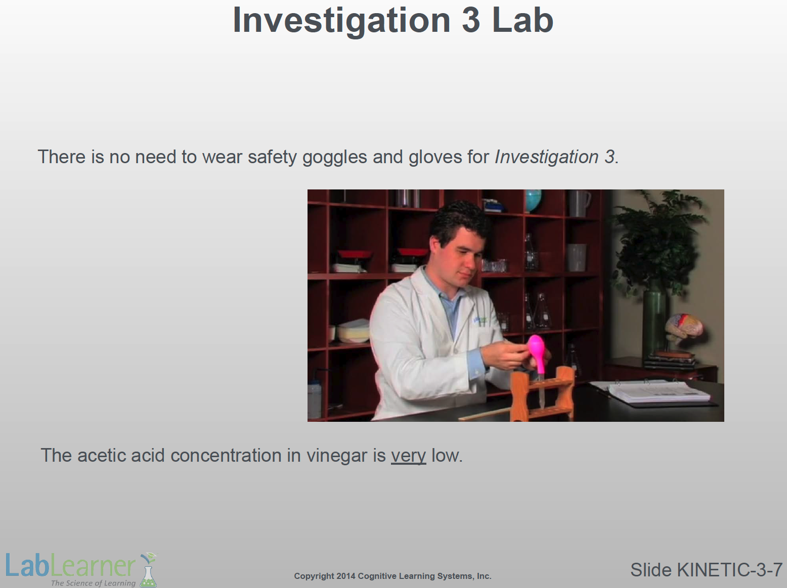 - No goggles or gloves are necessarily required for the experiment for Investigation 3.