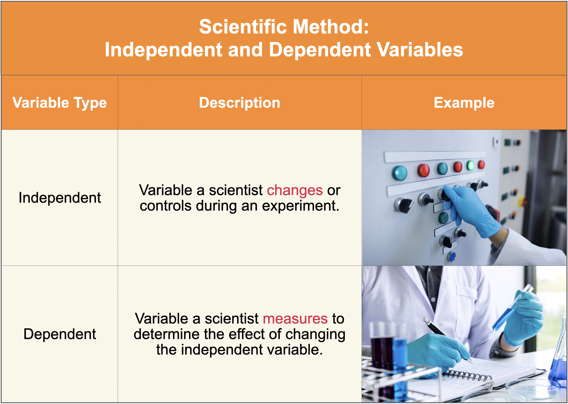 the independent variable is the variable that will be altered or manipulated in an experiment. The dependent variable, on the other hand, will be the variable that is measured during or at the end of an experiment as a result of changes made to the independent variable.