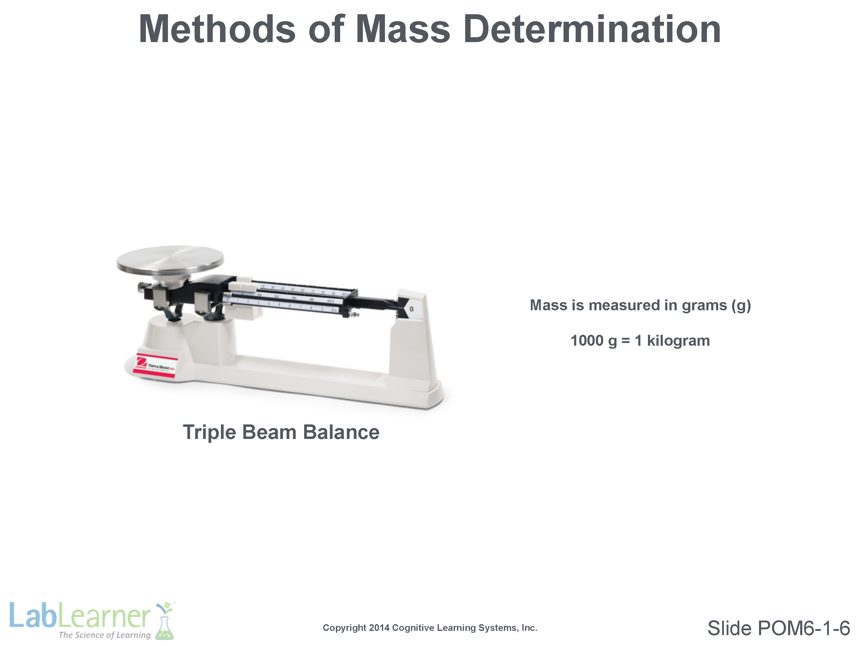 Note: This slide simply illustrates a triple beam balance that will be used in lab as a refresher. Grade 6 LabLearner students will be familiar with this instrument.