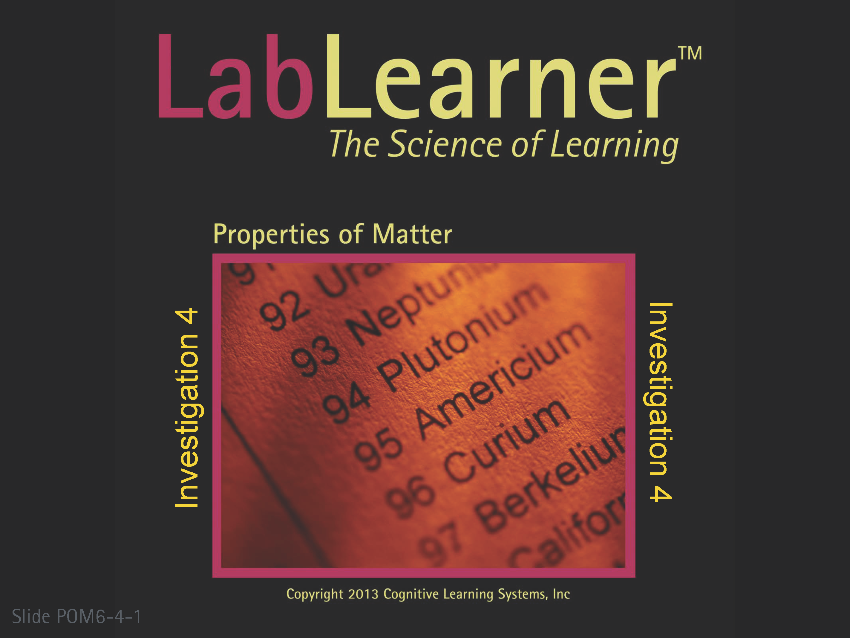 - Tell students that this final Investigation of the CELL Properties of Matter concludes with experiments involving another chemical property of matter, pH.