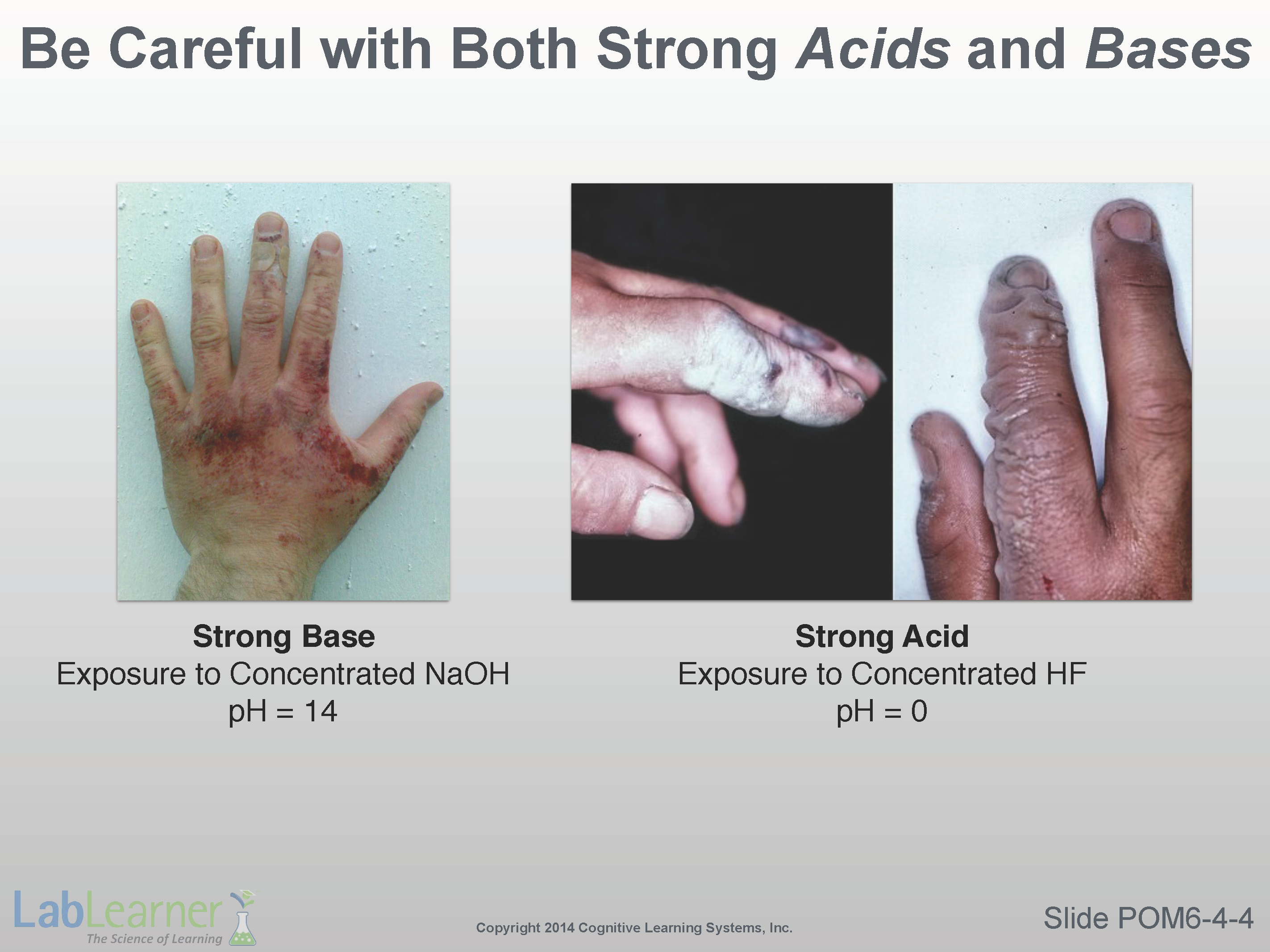 Note: The images are graphic but instructive. While most students suspect that acid can burn skin, they may not have considered that compounds at both extremes of the pH Scale can be hazardous.