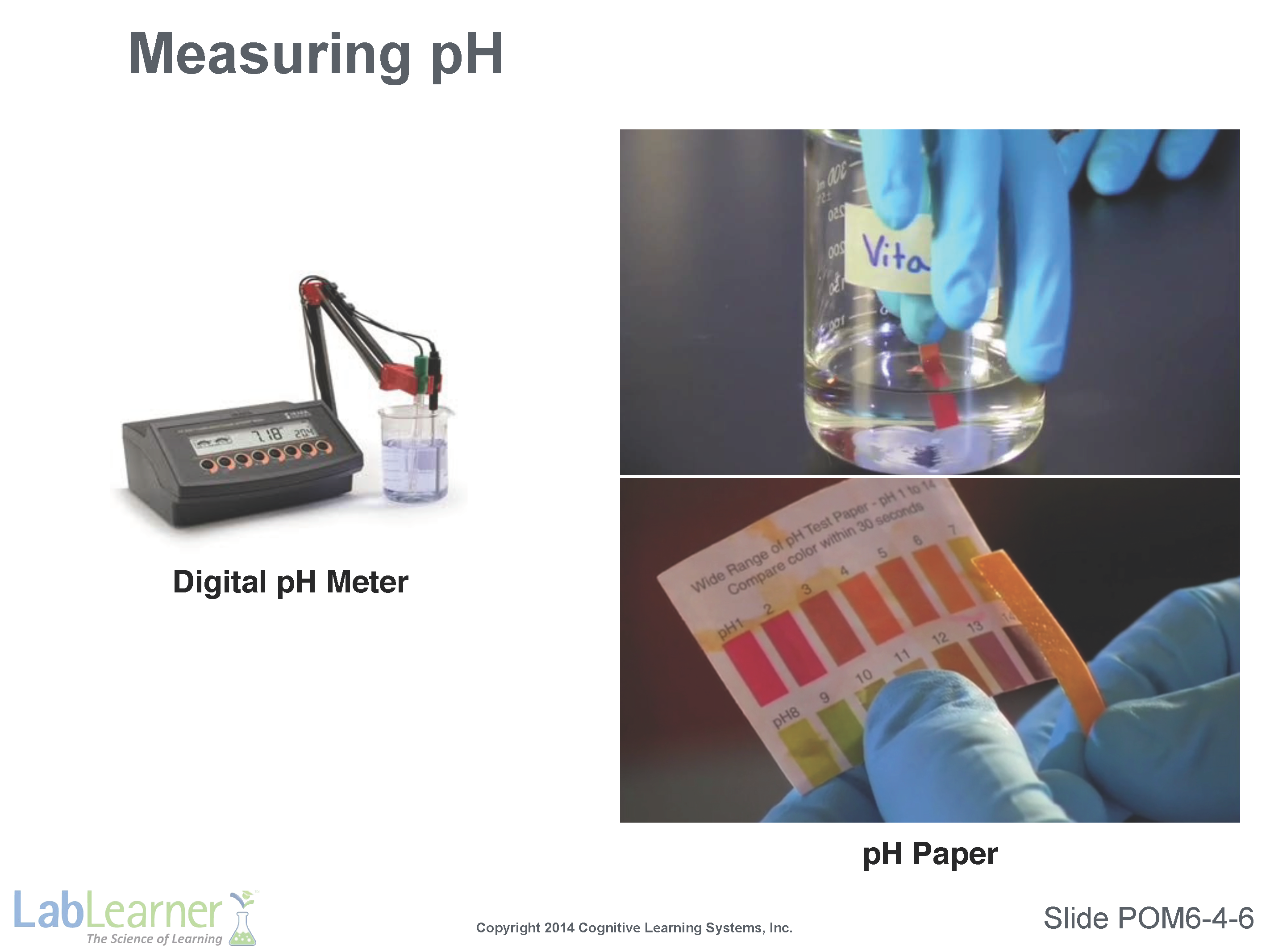 Note: While pH is actually a measure of the hydrogen ion concentration of a solution, we do not wish to confuse students with the concept of ions at this point. Students will learn much more about pH in the seventh-grade CELL Acids and Bases and at various other steps along the way.