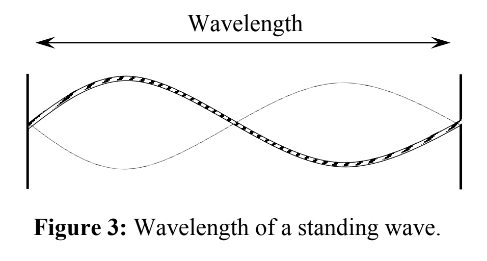 The second characteristic is the wavelength. In the case of standing waves, it is the distance in meters between successive nodes that bracket the two opposing antinodes. In the case of a pressure wave, it is the distance between two successive expansions or compressions.