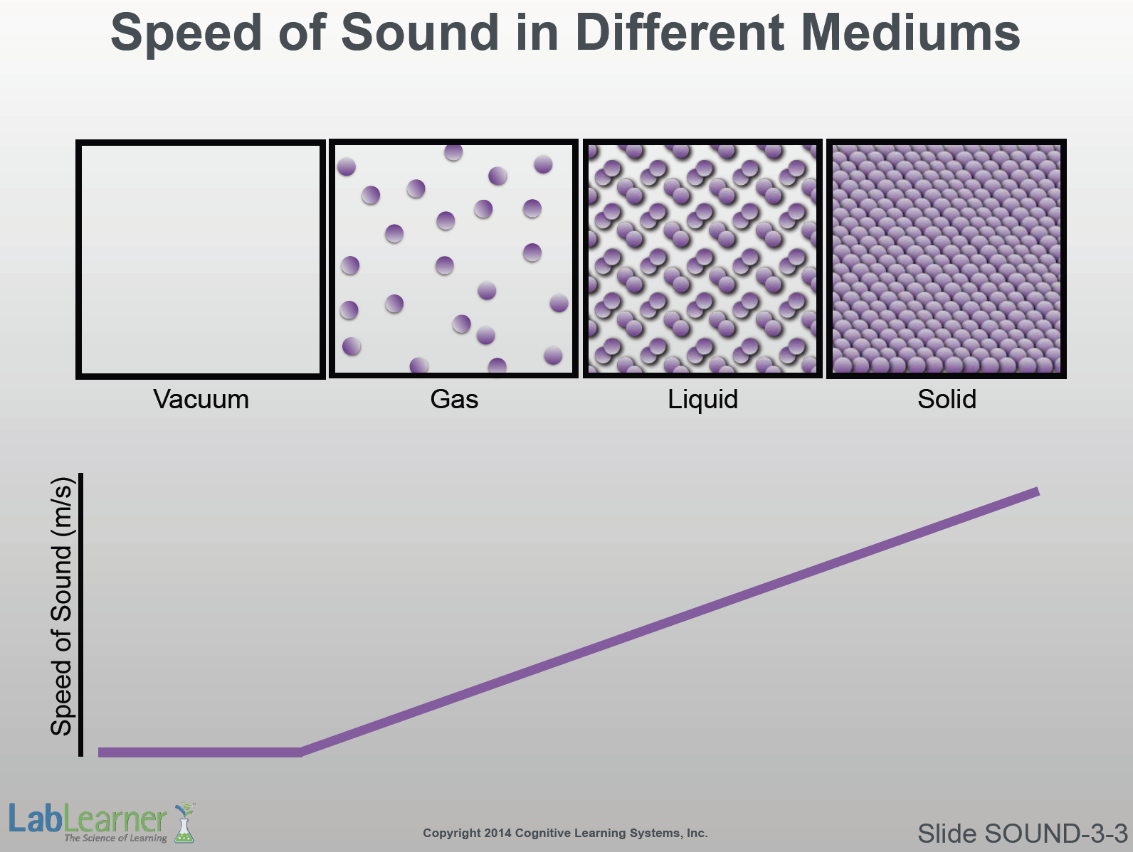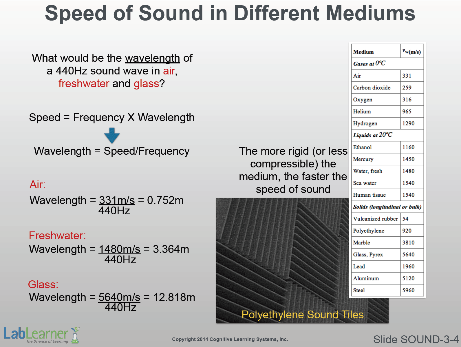 - In Investigation 3 Lab, students will model the speed of sound through gas, liquid, and solids. They will once again use the formula: