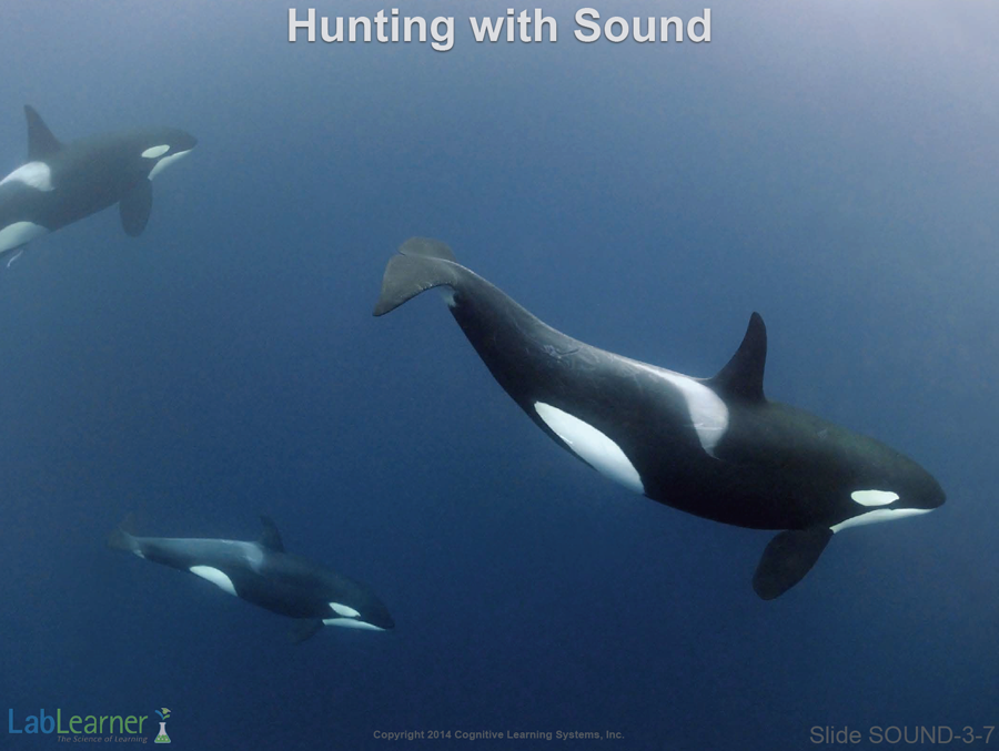 - This slide shows Orca whales (Killer Whales) and begins a series of three slides that discuss how this animal and other whales and dolphins use sonar to find prey.