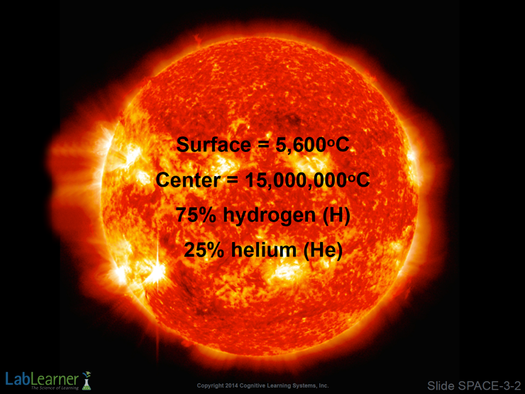 are hydrogen (75% of total mass) and helium (25% of total mass). In the next slide, we will see why such high temperatures and pressure, along with the presence of so much hydrogen, is so important.
