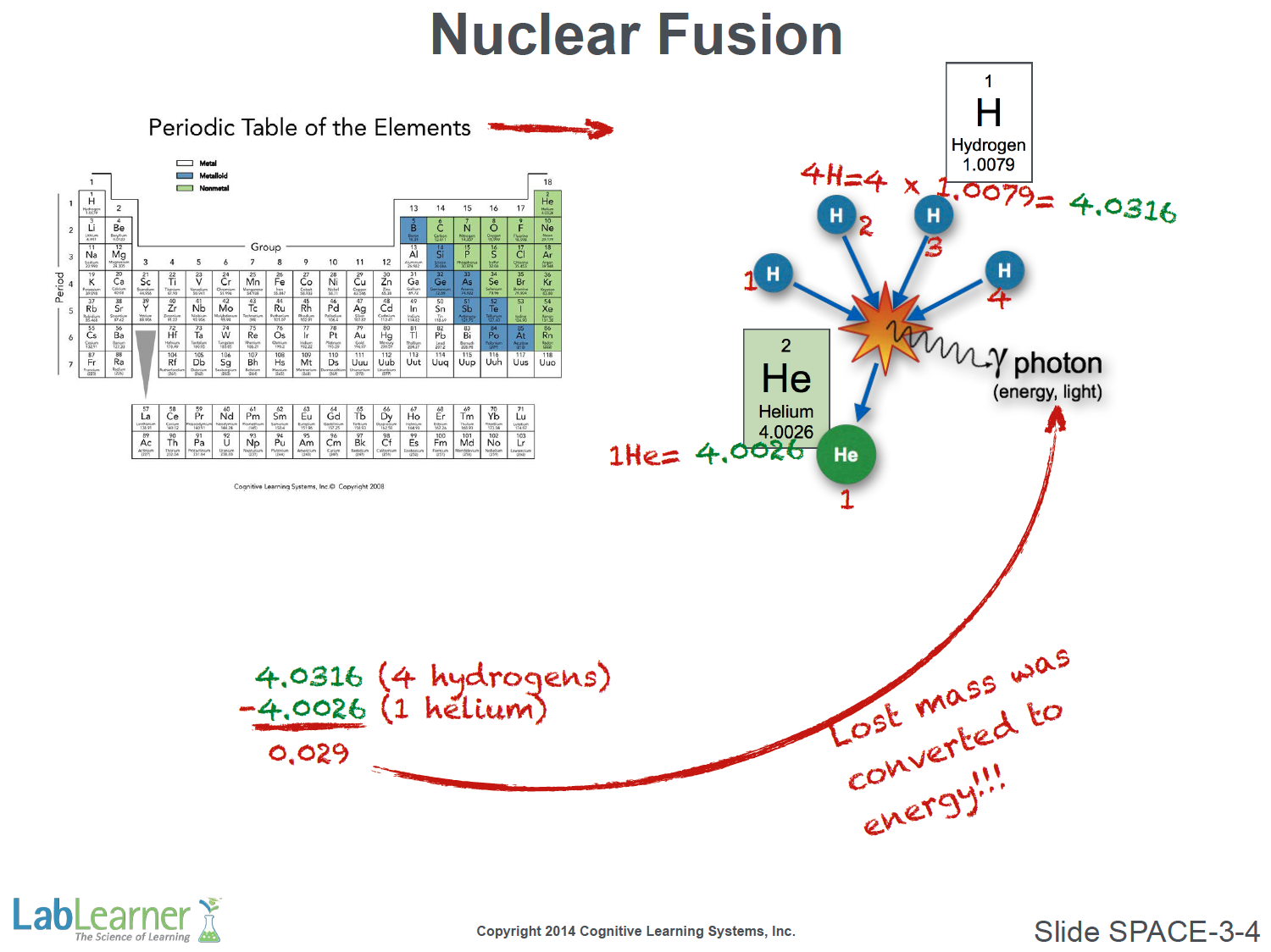 Note: The following calculations explain where the energy comes from in a nuclear fusion reaction. It also emphasizes the useful information found in the Periodic Table of the Elements.