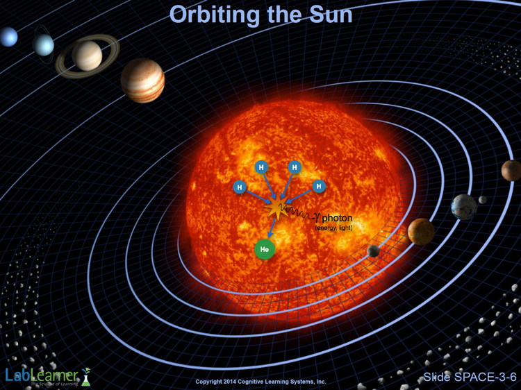 - This is a simple introductory slide to switch concepts from the Sun’s nuclear fusion reaction to the principle of planetary orbits.