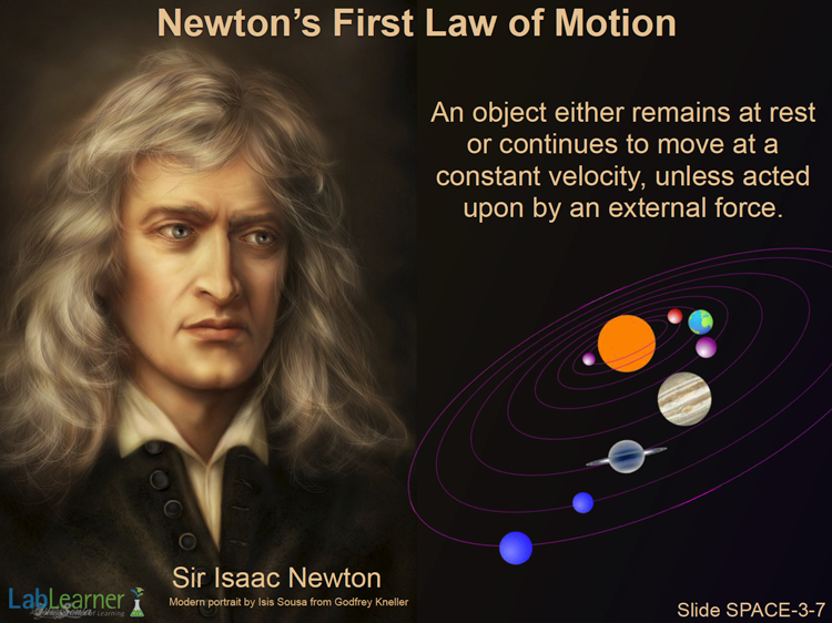 - Newton’s First Law of Motion is at the heart of explaining how orbits are dictated by gravity and mass, as we will discuss on the following two slides.