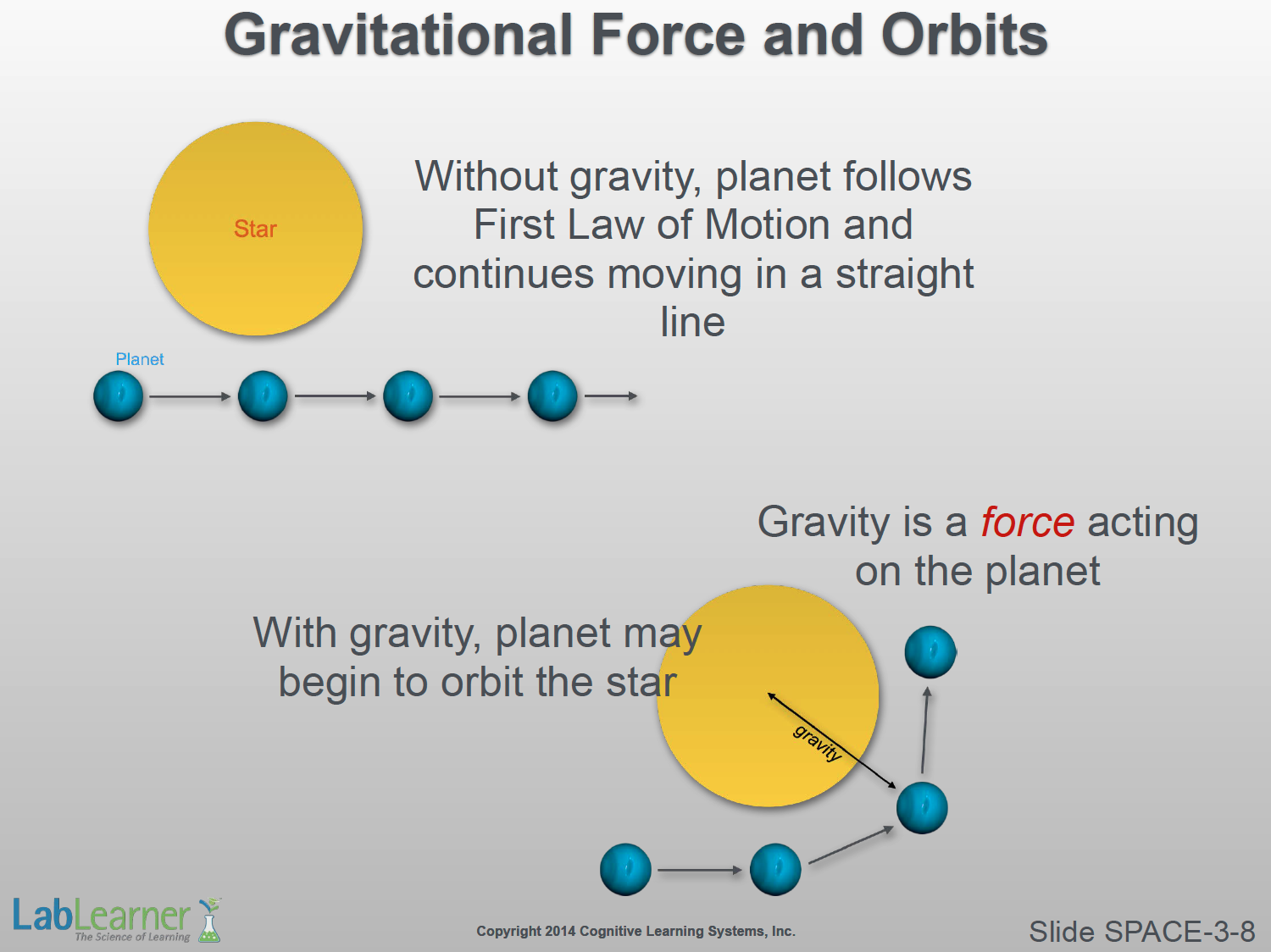 - As shown in the top illustration on this slide, without the pull of gravity on a planet, it would simply move in a straight line by the star (the Sun for example) and continue on its way.
