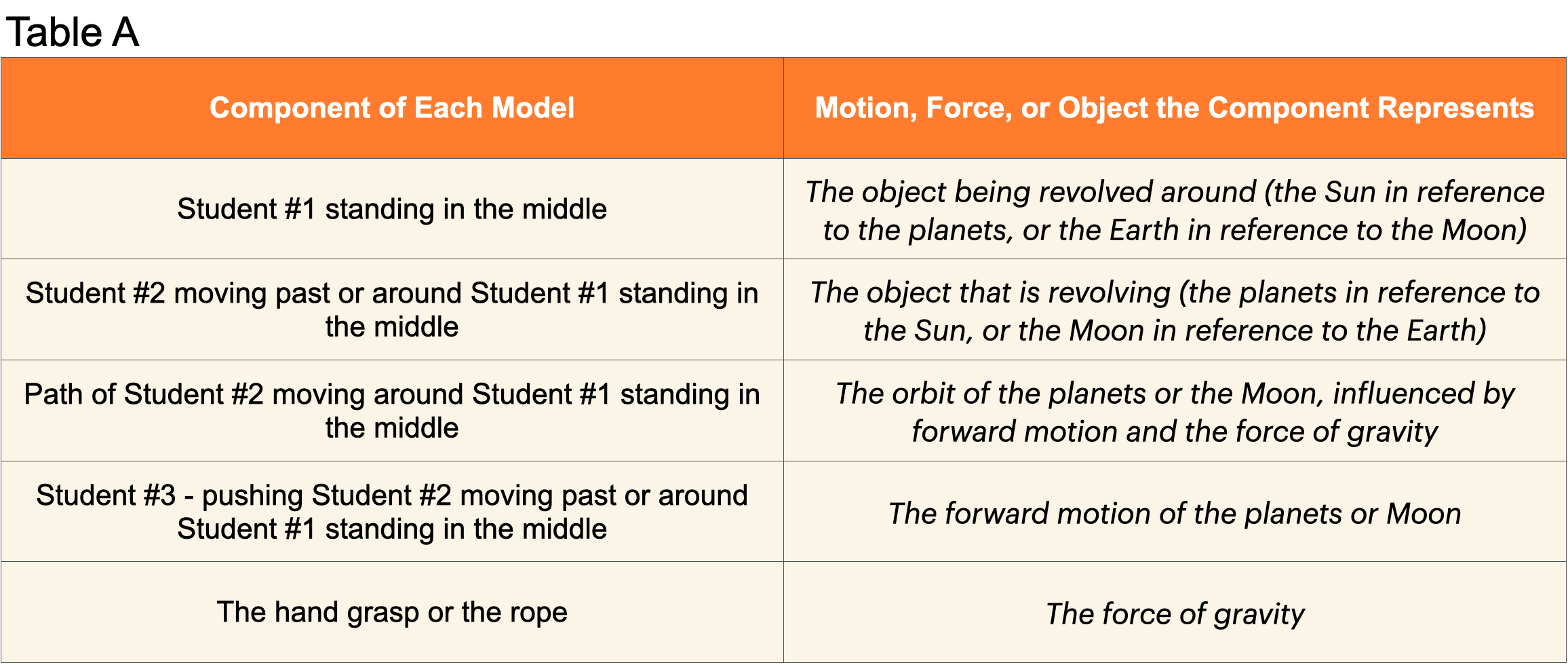 - ∆ What governs the movement of the planets around the Sun and the Moon around the Earth? Based on students’ models, students should indicate that the forward motion of the planets and the force of gravity between the Sun and the planets or the Earth and the Moon causes the planets to orbit the Sun, and the Moon to orbit the Earth.