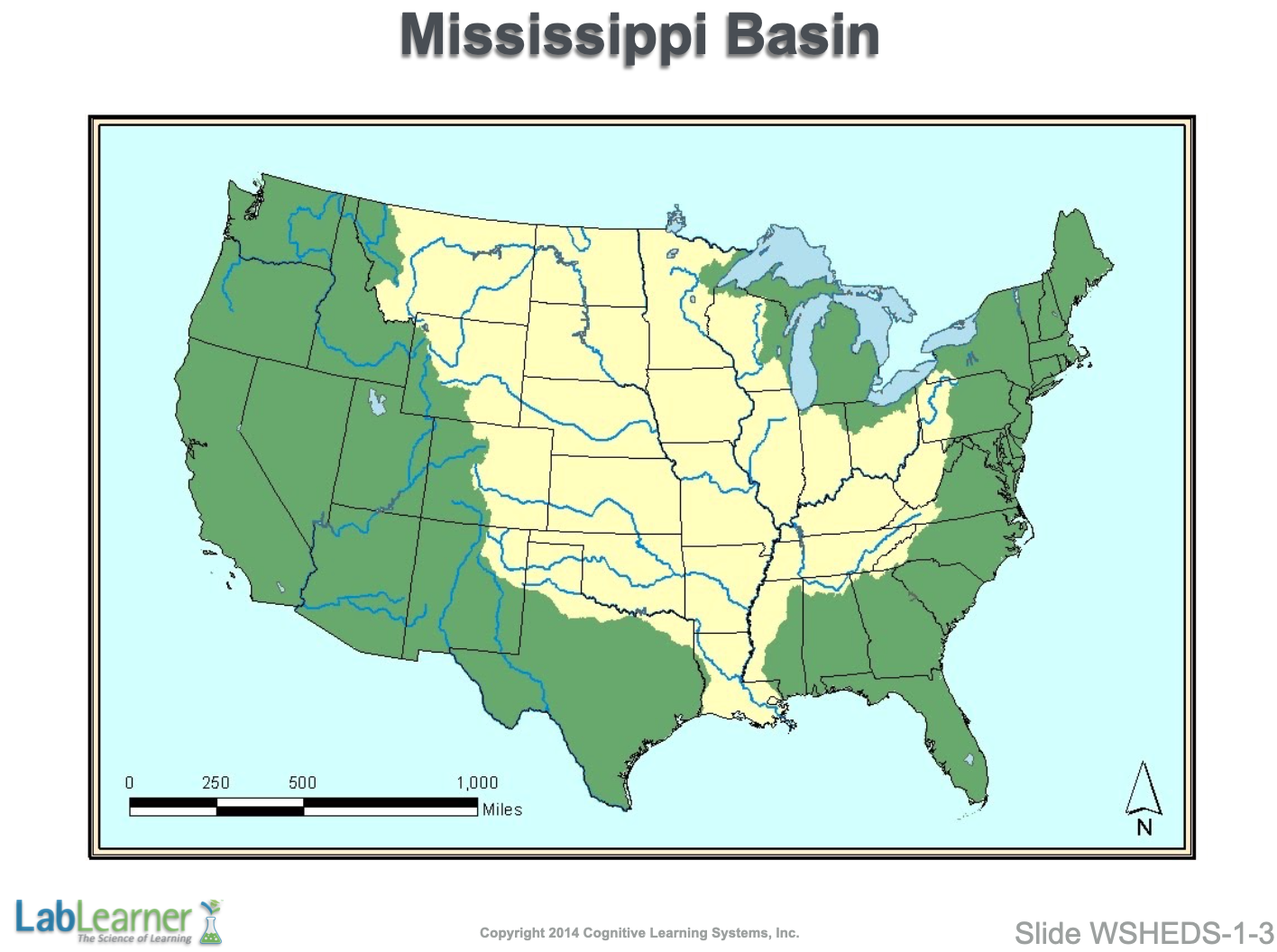 - Notice that there are numerous large rivers contained within the Mississippi basin. In fact, a number of smaller, but still quite large, basins conjoin to create the Mississippi basin.